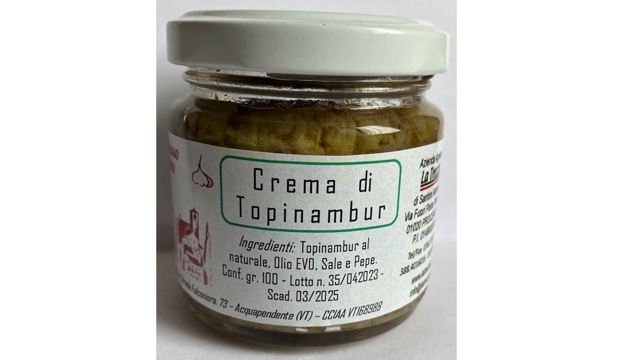 Per il periodo Aprile-Ottobre, quando la pianta cresce e non è disponibile in bulbi, abbiamo creato questo vasetto da 100gr di 'Crema al naturale' con Topinambur, Olio Evo, sale e pepe.